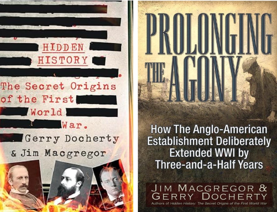 Jim Macgregor and Gerry Docherty, Prolonging the Agony: How the Anglo-American Establishment Deliberately Extended WWI by Three-and-a-Half Years (Walterville, Oregon: Trine Day, 2018).